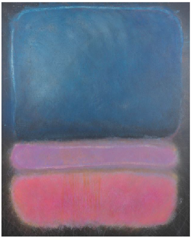 Arte abstracto con bloques difusos de azul profundo y tonos rosados que evocan calma y contraste vibrante.