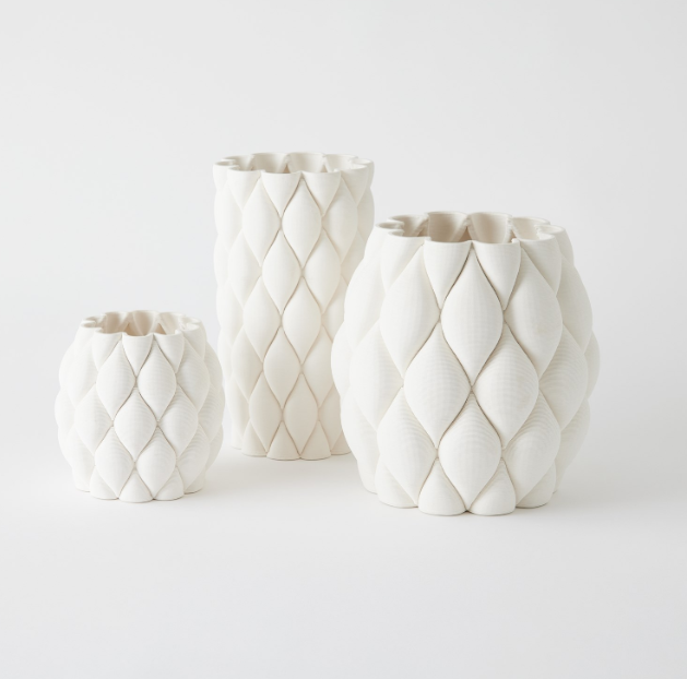 Los jarrones estampados Pillowed presentan un elegante acabado cerámico blanco mate que encarna el diseño moderno. Elaborados con tecnología de impresión 3D de vanguardia, estos jarrones ofrecen un toque artístico único, perfecto para realzar cualquier espacio