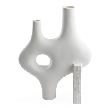 Presentamos el jarrón XL, una adición enorme a nuestra colección de cerámica Paradox, todo un éxito de ventas. Una de las dos grandes incorporaciones a nuestra colección de esculturas funcionales, con suaves formas orgánicas que se entrecruzan con bloques de porcelana de textura rugosa. Una pieza impactante por sí sola, ideal como pieza central o para crear un impactante paisaje artístico en blanco .