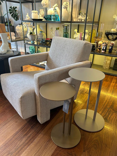 Mesa auxiliar perfecta para apoyar los grandes sofás, poltronas o cualquier espacio que lo requiera. Base metálica pintada en Poliuretano, su acabado puede personalizarse en diferentes tonos y dimensiones según las necesidades de tu espacio.