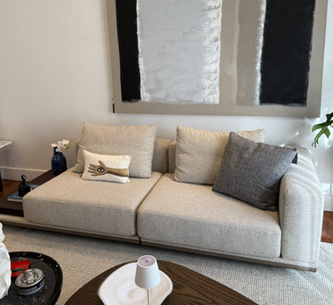 Sofá Rafaello 240L x 100F con mesa lateral auxiliar en madera.